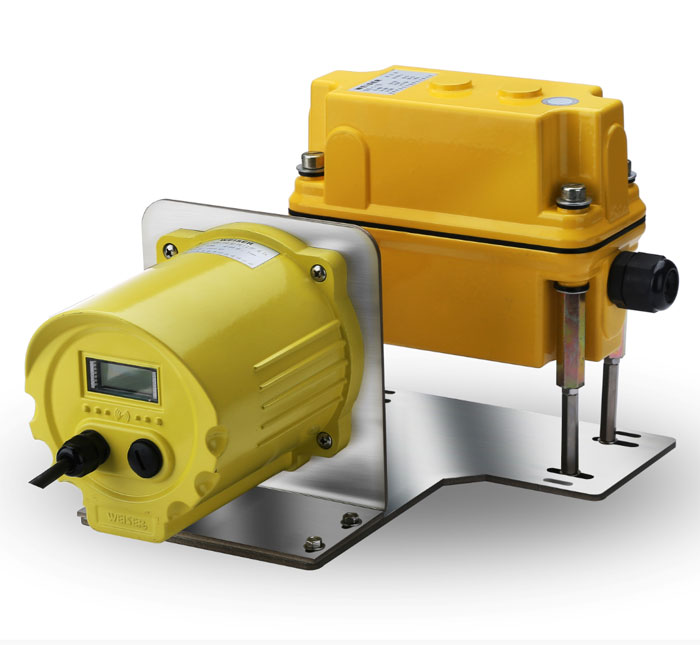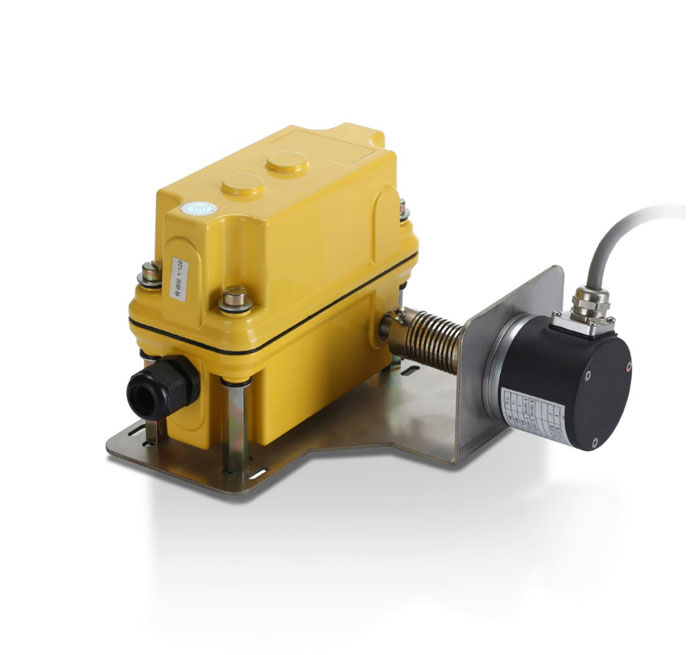 在編碼器旋轉(zhuǎn)的同時,一體化行程開關(guān)裝置的中軸通過減速器也在同步旋轉(zhuǎn),如到達(dá)限位狀態(tài),即輸出“通”或“斷”的信號給控制器。